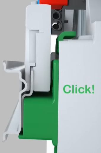 Ces disjoncteurs sont compatibles avec les tableaux modulaires standards (rail DIN, pas de 18 mm) et permettent un raccordement rapide grâce à leurs bornes automatiques.