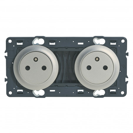 Double prise de courant avec terre précâblée Céliane Surface Titane (099755)