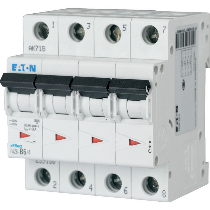 Disjoncteur FAZ6, 16A, 4P, 6kA (EN 60898) 10kA (IEC/EN 60947-2), courbe D