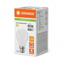 LEDVANCE LED CLASSIC A DIM P 5.9W 840 Dépoli B22d - 806lm - 2700K - 300° - Gradable - IRC80 - Blanc chaud - Verre - 15000h - Garantie 5 ans