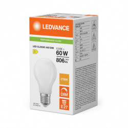 LEDVANCE LED CLASSIC A DIM P 5.9W 827 Dépoli E27 - 806lm - 2700K - 300° - Gradable - IRC80 - Blanc chaud - Verre - 15000h - Garantie 5 ans