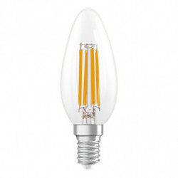 Lampes LED à intensité variable, forme de bougie classique. Caractéristiques du produit: Lampes LED professionnelles pour tension secteur. Gradable. Durée de vie jusqu'à 15 000 h. Ouverture du faisceau : jusqu'à 300°. Lampe en verre. Bonne qualité de la lumière ; indice de rendu des couleurs Ra: ≥ 80; chromaticité constante. Avantages du produit: Design, dimensions, flux lumineux comparables à une lampe à incandescence. Consommation d'énergie inférieure à celle des lampes à incandescence ou halogènes. Robuste contre les vibrations. Allumage instantané. Peut remplacer facilement les lampes standard. Zones d'application: Idéal pour les installations décoratives. Applications domestiques. Éclairage général. Utilisation en extérieur uniquement dans des luminaires d'extérieur appropriés. Conseils de sécurité: Ne touchez pas la lampe si elle est cassée.. Ne doit pas être utilisé si l'ampoule extérieure est défectueuse..