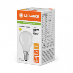 LEDVANCE LED CLASSIC P DIM P 3.4W 827 Dépoli E14 - 470lm - 2700K - 320° - Gradable - IRC80 - Blanc chaud - Verre - 15000h - Garantie 5 ans