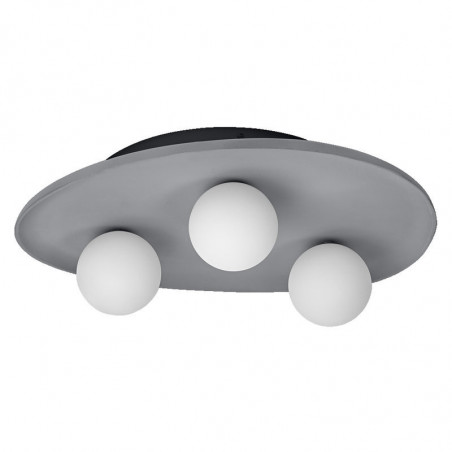 Plafonnier décoratif en béton cuivré de classe I, 220-240V, avec bornier auto. Diffuseur rond en verre opal. Pour 3 lampes G9 de puissance max 5W chacune. Visserie pour l'installation incluse. Dimensions: 260 x 200 x 135mm. Garantie 5 ans.