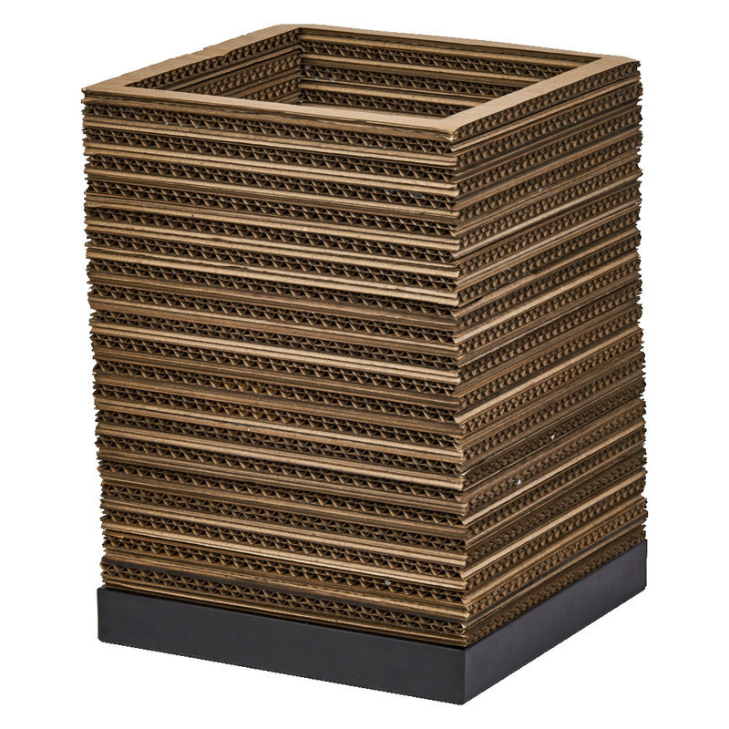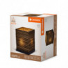 Luminaire décoratif de classe II, 220-240V. Structure en acier noir, habillage carré en carton robuste. Pour lampe LED à culot E27 de puissance maximale 15W. Raccordement par câble de type C 1,5m. Dimensions : ø 200x 385 mm. Garantie 5 ans.