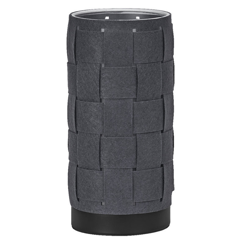 Luminaire décoratif de classe II, 220-240V. Structure en acier noir, abajour rond en feutre gris foncé. Forme tubulaire. Pour lampe LED de puissance maximale 15W. Raccordement câble 1,5m de type C. Dimensions: ø120 x 260 mm. Garantie 5 ans.