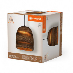 Luminaire décoratif de classe II, 220-240V. Structure en acier noir, habillage en carton robuste. Suspension réglable. Pour lampe LED à culot E27 de puissance maximale 15W. Bornier à vis. Dimensions : ø 250x 1 340 mm. Garantie 5 ans.