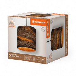 Luminaire décoratif de classe II, 220-240V. Structure en acier noir, habillage rond en carton robuste. Pour lampe LED à culot E27 de puissance maximale 15W. Raccordement par bornier à vis. Dimensions : ø 250x 1 300 mm. Garantie 5 ans.