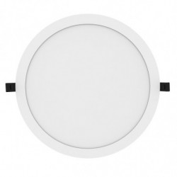 Classe II. Corps en fonte d'alu blanc extra fin, diffuseur en PMMA (90°). Jusqu'à 100lm, 50 000h L70. Choix de puissance et de temp de couleur. Alim externe, bornier auto, repiquage. Filin. Découpe ø280. Dim. : ø292x23mm. Garantie 5 ans.