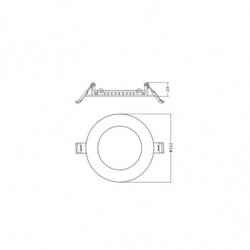 Classe II. Corps en fonte d'alu extra fin, diffuseur en PMMA (90°). Jusqu'à 100lm, 50 000h L70. Choix de puissance et de temp de couleur. Alim externe gradable, bornier auto, repiquage. Filin. Découpe ø100. Dim. : ø112x23mm. Garantie 5 ans.