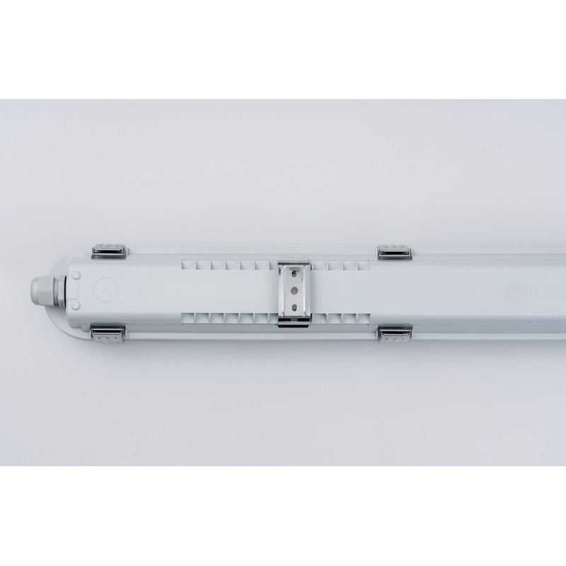 Luminaire de classe I en Polycarbonate avec batterie LiFePO4 intégrée. Autonomie 3h, auto test, LED d'indication de statut et suivi de la température de la batterie. Jusqu'à 140lm/W et 50 000h L80. Dimensions : 1200x95x78mm. Garantie 3 ans.