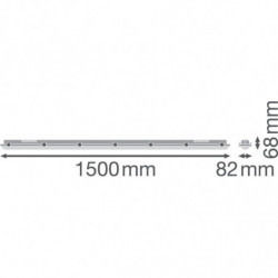 Classe I, corps gris et diffuseur (120°) en PC. Alim et source LED remplaçables. Jusqu'à 160lm/W, 100 000h L80, IK08. 5x2,5mm² traversant. Choix du flux lumineux sur plusieurs niveaux. CEE. Temp. : -25…+40°C. 1500x82x68mm. Garantie 5 ans.