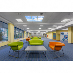 Panel luminaires featuring a printed realistic sky image, for 600 x 600 ceiling systems. Caractéristiques du produit: Cadre en aluminium extrudé, boîtier métallique. Color coated polystyrene diffuser. UGR ≤ 22 with a 120° beam angle. Durée de vie (L80 / B10) : jusqu'à 50 000 h (à 25 ° C). Avantages du produit: Brings natural looking sky into buildings. Luminous ceiling creating an atmosphere that comforts people. Available as a single panel, set of 6 and set of 9. Other images, customized patterns and logos on request. Alimentation externe avec câblage traversant à 3 pôles en option. Version avec alimentation DALI disponible. Zones d'application: Convient aux systèmes encastrés avec une grille de dimensions 600 x 600 mm. Lounges, reception areas, foyers, corridors, elevators. Éclairage décoratif. Technique / Accessoires: Accessoires pour plusieurs options de montage disponibles. Câble de sécurité pour luminaire fourni. Supports de sécurité préinstallés. Ballast externe inclus. Conseils de sécurité: The individual pattern can have influence on the perceived CRI, color temperature and lumen value..