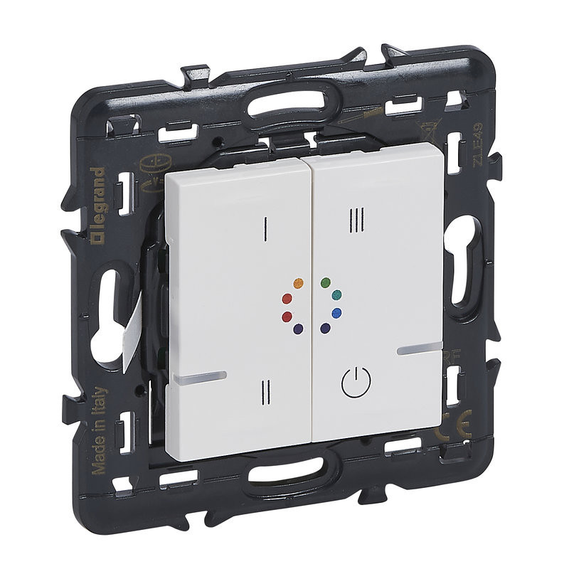 Commande sans fils Mosaic with Netatmo pour ampoules multicouleurs compatible Zigbee - livrée avec fixations autocollantes, support et enjoliveur de finition blanc , à équiper de plaque de finition