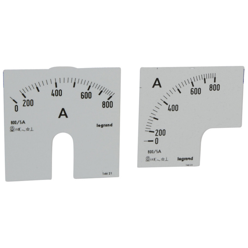 Cadrans de mesure pour ampèremètre analogique 0A à 800A 1 cadran pour fût rond et 1 cadran pour fût carré (014621)