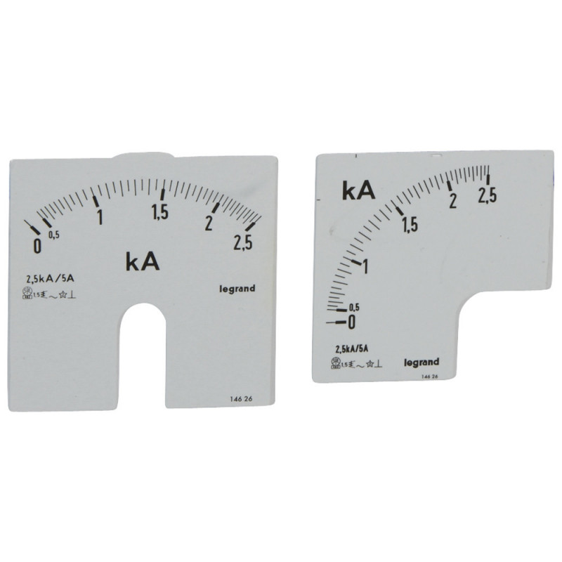 Cadrans de mesure pour ampèremètre analogique 0A à 2500A 1 cadran pour fût rond et 1 cadran pour fût carré (014626)