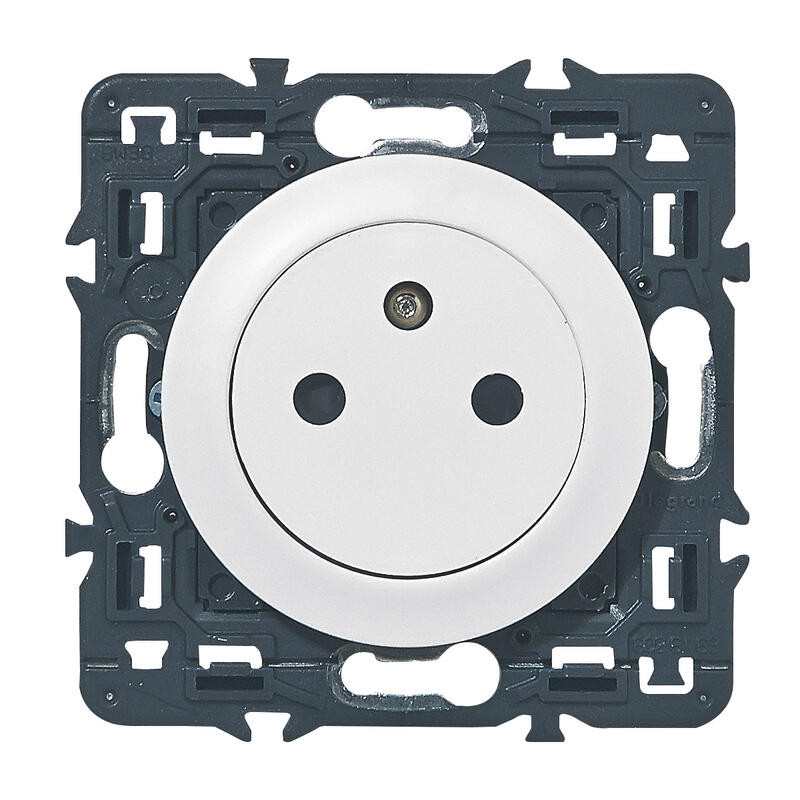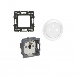Prise de courant avec terre Céliane Surface blanc, composé d'une plaque, de la prise et de l'enjoliveur, à équiper d'une plaque