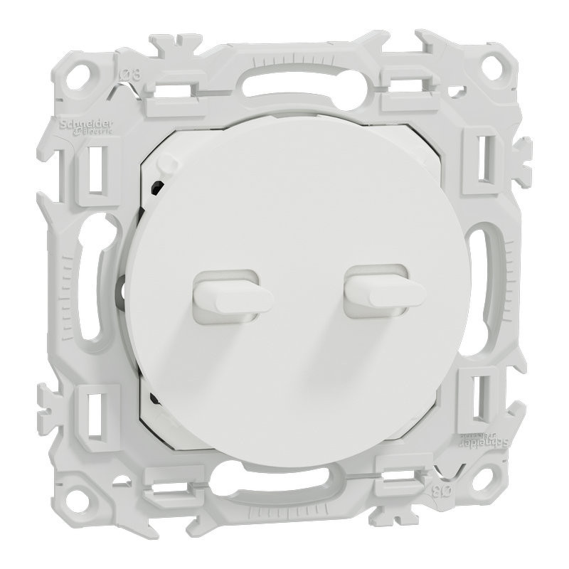 Odace - double va-et-vient ou poussoir - multifonctionnel - ergonomie à levier - 3x2 bornes auto - 10AX 250V CA 50Hz - cache peinture - blanc RAL 9003 mat - IK04 IP21D - certifié NF