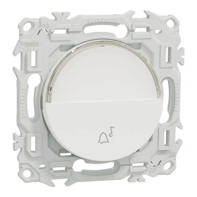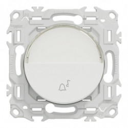 Odace - bouton-poussoir porte-étiquette - symbole carillon - 2x2 bornes auto - 10A 250V CA 50/60 Hz - blanc RAL 9003 mat - IK04 IP21 D - cache peinture - certifié NF