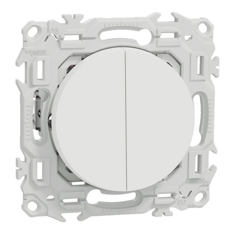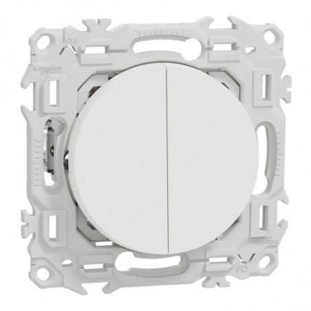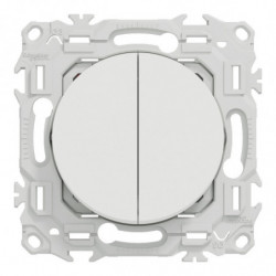 Odace - double va-et-vient ou poussoir - multifonctionnel - griffes montées - 3x2 bornes auto - 10AX 250V CA 50Hz - devient lumineux avec LED S989292 - cache peinture - blanc RAL 9003 mat - IK04 IP21D - certifié NF