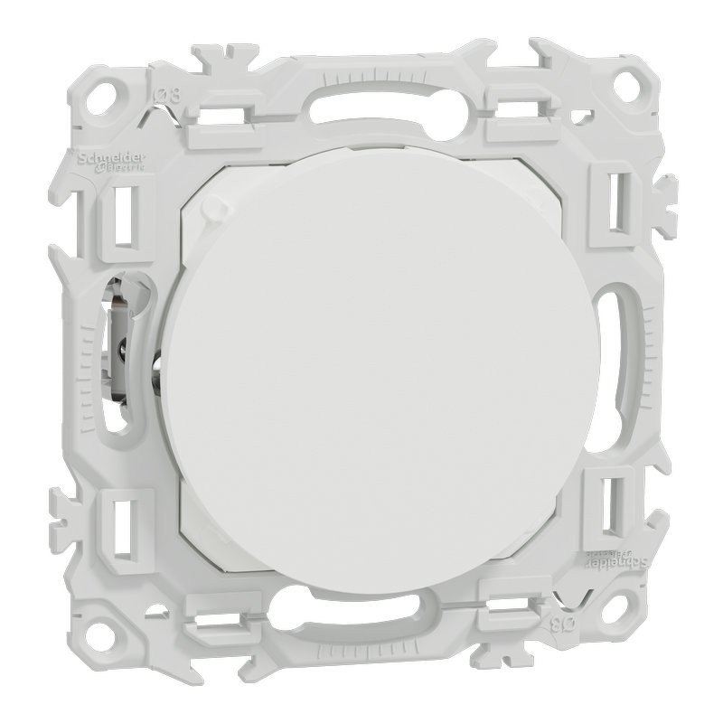 Odace - obturateur - perçage possible de l'enjoliveur pour sortie de câble - griffes montées - cache peinture - blanc RAL 9003 mat - IK04 IP21D