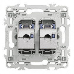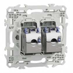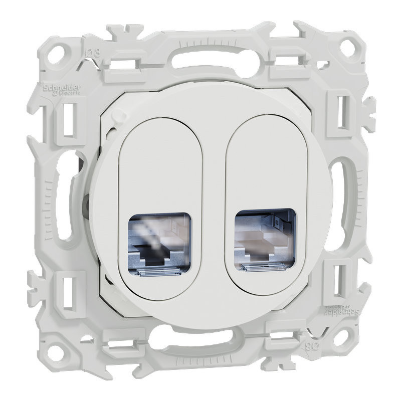 Odace - prise de communication double - 2 connecteurs S-One RJ45 Cat6 STP blindé - grade 2 TV min à grade 3 TV - téléphone + informatique + TV TNT + TV SAT - compatible Gigabit et PoE+ - cache peinture - blanc RAL 9003 mat - IK04 IP20