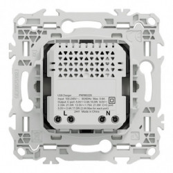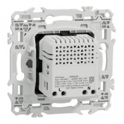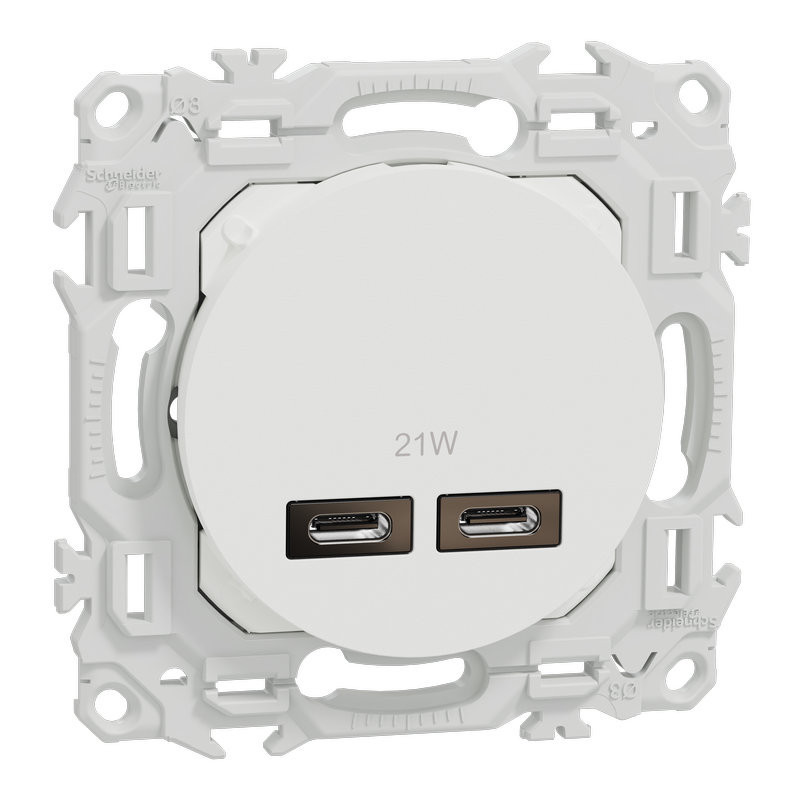 Odace - chargeur double USB type C+C 21W Power Delivery 3.1 - 2x2 bornes auto - 1x1,5 à 2x2,5 mm² rigide ou souple - 16A 250VCA 50 Hz - cache peinture - blanc RAL 9003 mat