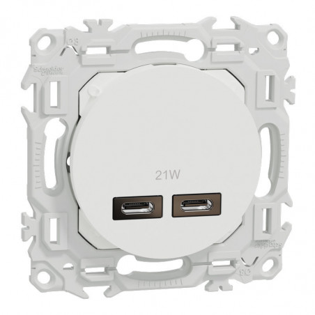 Odace double chargeur USB-C 21W blanc