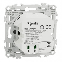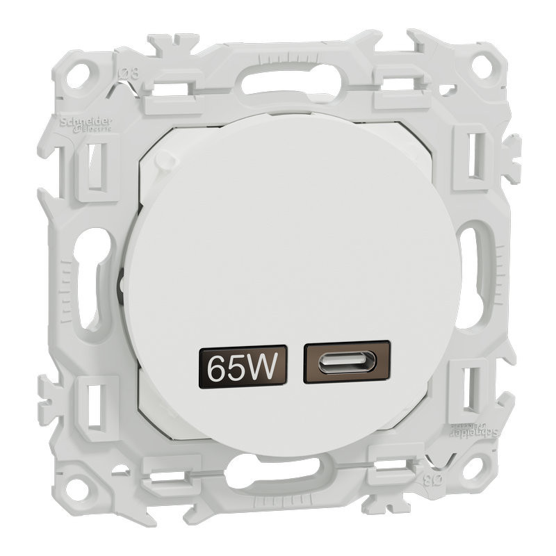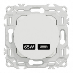 Odace - chargeur USB type C 65W Power Delivery 3.0 - forte puissance charge rapide appareils mobiles ordinateurs et smartphones - bornes à vis -16A 250VCA 50Hz - cache peinture - blanc RAL 9003 mat