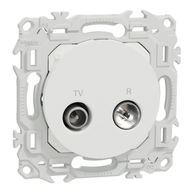 Odace - prise TV/FM - TV : mâle IEC 9.52 mm - FM IEC femelle 9.52 mm - cache peinture - blanc RAL 9003 mat - IK04 IP20D - certifié NF