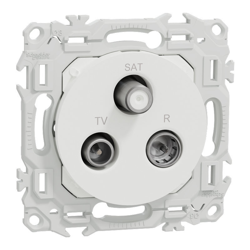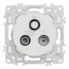 Odace - prise TV/FM/SAT - 1 entrée - TV : mâle IEC 9.52 mm - FM IEC femelle 9.52 mm - SAT F type - cache peinture - blanc RAL 9003 mat - IK04 IP20D