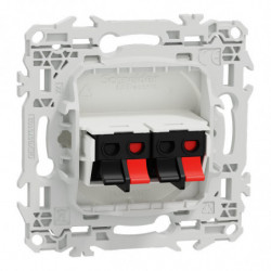 Odace - prise haut-parleurs double 2 sorties - 4 poussettes identifiées noir/rouge - cache peinture - blanc RAL 9003 mat