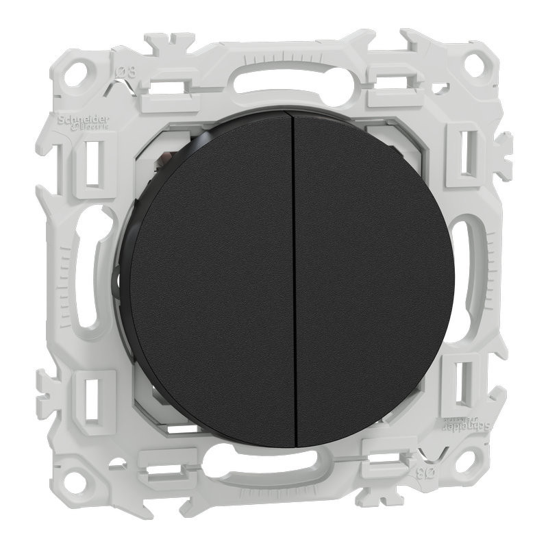 Odace - double va-et-vient ou poussoir - multifonctionnel - 3x2 bornes auto - 10AX 250V CA 50Hz - devient lumineux avec LED S989291 et enjoliveur S949270 - IK04 IP21D - cache peinture - noir RAL 9005 mat - IK04 IP21D - certifié NF