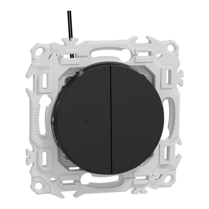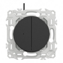 Odace - double va et vient ou poussoir lumineux - multifonctionnel - LED verte 0,15mA à câbler droite ou gauche en localisation ou témoin - 10AX 250V CA 50 Hz - IK04 IP21D - cache peinture - noir RAL 9005 mat - IK04 IP21D - certifié NF