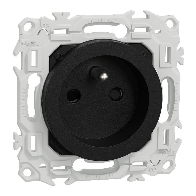 Odace - prise de courant 2P+T rénovation à puits - montage griffes possible - 3x4 bornes auto - 1x1,5 à 4x2,5 mm² rigide ou souple - 16A 250VCA 50Hz - cache peinture - noir RAL 9005 mat - IK04 IP21D - certifié NF