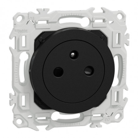 Odace - prise de courant 2P+T affleurante - montage griffes possible - 3x2 bornes auto - 1x1,5 à 2x2,5 mm² rigide ou souple - 16A 250VCA 50Hz - cache peinture - noir RAL 9005 mat - IK04 IP21D - certifié NF
