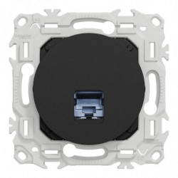 Odace - prise de communication simple - connecteur S-One RJ45 Cat6 STP blindé - grade 2 TV min à grade 3 TV - téléphone + informatique + TV TNT + TV SAT - compatible Gigabit et PoE+ - cache peinture - noir RAL 9005 mat - IK04 IP20