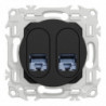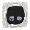 Odace - prise de communication double - 2 connecteurs S-One RJ45 Cat6 STP blindé - grade 2 TV min à grade 3 TV - téléphone + informatique + TV TNT + TV SAT - compatible Gigabit et PoE+ - cache peinture - noir RAL 9005 mat - IK04 IP20