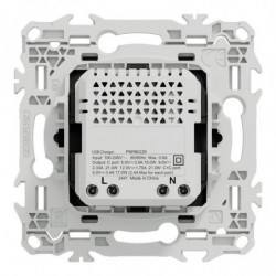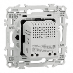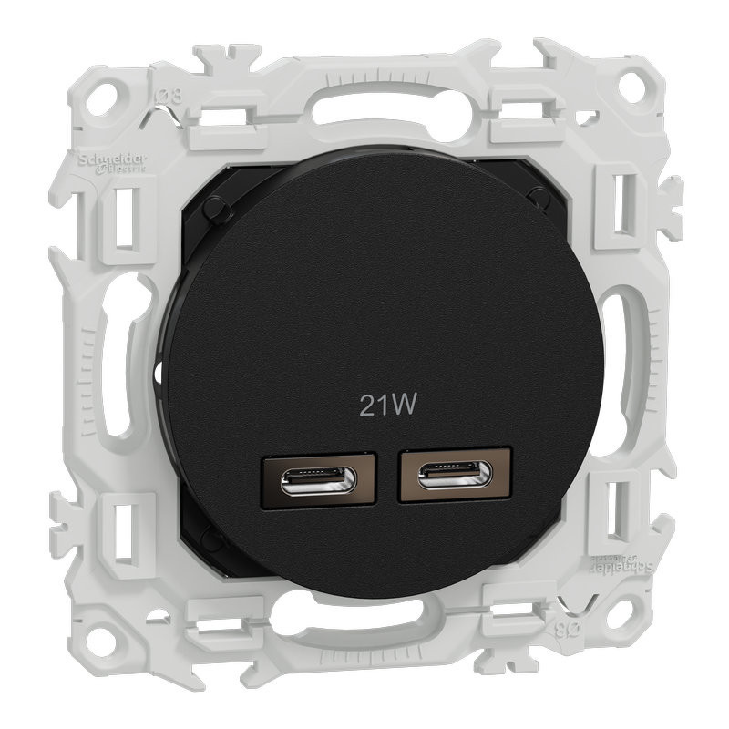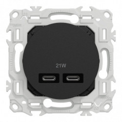 Odace - chargeur double USB type C+C 21W Power Delivery 3.1 - 2x2 bornes auto - 1x1,5 à 2x2,5 mm² rigide ou souple - 16A 250VCA 50 Hz - cache peinture - noir RAL 9005 mat