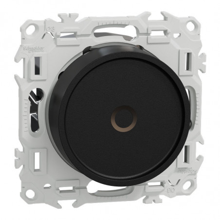 Odace - variateur de lumière universel - câblage possible en 2 ou 3 fils - rotatif - sans neutre : compatible avec LED dimmable 3 à 200W - avec neutre : compatible LED dimmable 0 à 200W - livré avec griffes non montées - noir RAL 9005 mat