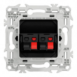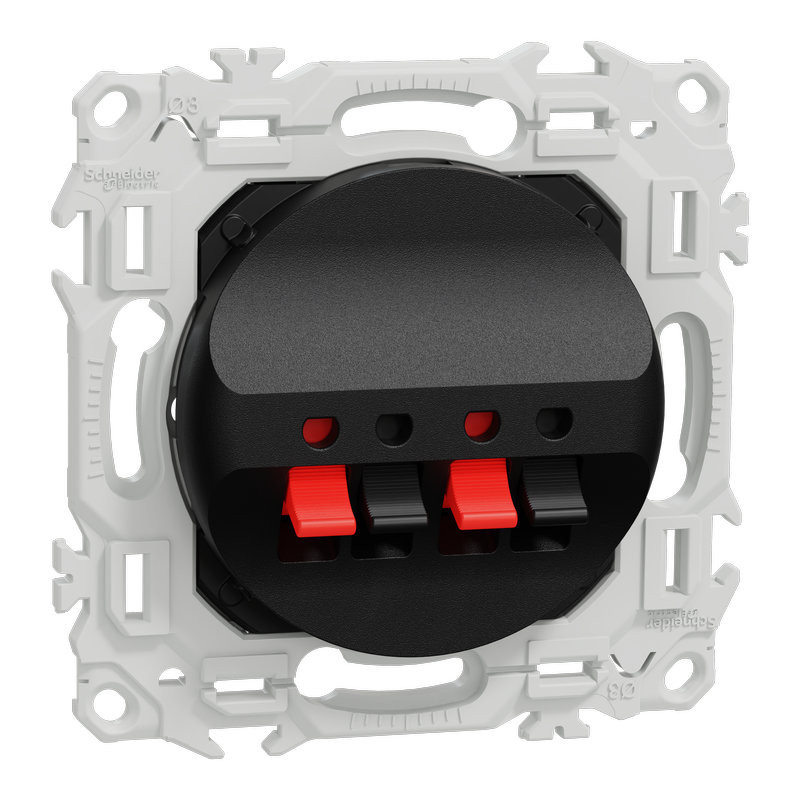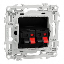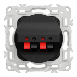 Odace - prise haut-parleurs double 2 sorties - 4 poussettes identifiées noir/rouge - cache peinture - noir RAL 9005 mat