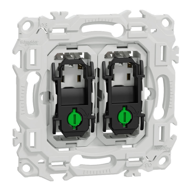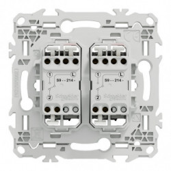 Odace - double va-et-vient ou poussoir sans enjoliveur - à équiper d'un enjoliveur double : standard ou levier ou Intégral - multifonctionnel - 3x2 bornes auto - 10AX 250V CA 50Hz - IK04 IP21D - cache peinture - certifié NF
