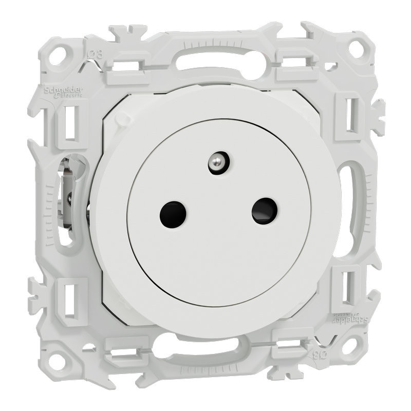 Odace - prise de courant 2P+T affleurante - griffes montées - 3x2 bornes auto - 1x1,5 à 2x2,5 mm² rigide ou souple - 16A 250VCA 50Hz - cache peinture - blanc RAL 9003 mat - IK04 IP21D - certifié NF