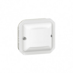 Interrupteur automatique universel Plexo à détection infrarouge, compatible toutes lampes et jusqu'à 500W LED, câblage 3 fils avec Neutre IP55 avec enjoliveur transparent, à équiper de support plaque ou boîtier saillie.