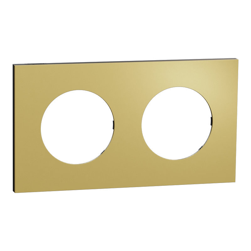 Odace Métal - plaque de finition - effet Laiton support noir - 2 postes horizontal 71mm | 2 postes vertical 71mm - H87,5mm x L158,5mm x P11,7mm - IK04 IP21D - régulation automatique brevetée