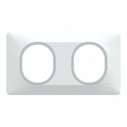 Ovalis - Plaque de finition - 2 postes Horiz - 71mm - Blanc bague Argent Chromé (S320704F)