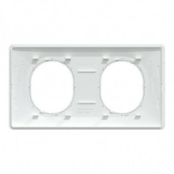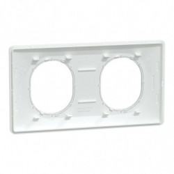 Ovalis - Plaque de finition - 8 crans de fixation - régulation possible sur le mur - 2 postes Horizontal - entraxe 71mm - Blanc avec bague effet Argent Chromé