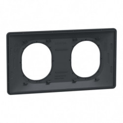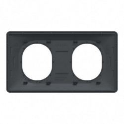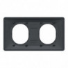 Ovalis - Plaque de finition - 8 crans de fixation - régulation possible sur le mur - 2 postes Horizontal - entraxe 71mm - Anthracite avec bague effet Argent Chromé