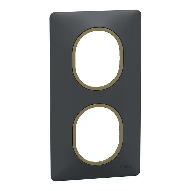 Ovalis - Plaque de finition - 2 postes Vertical - 71mm - Anthracite bague Laiton (S340724E)