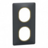 Ovalis - Plaque de finition - 8 crans de fixation - régulation possible sur le mur - 2 postes Vertical - entraxe 71mm - Anthracite avec bague effet Laiton